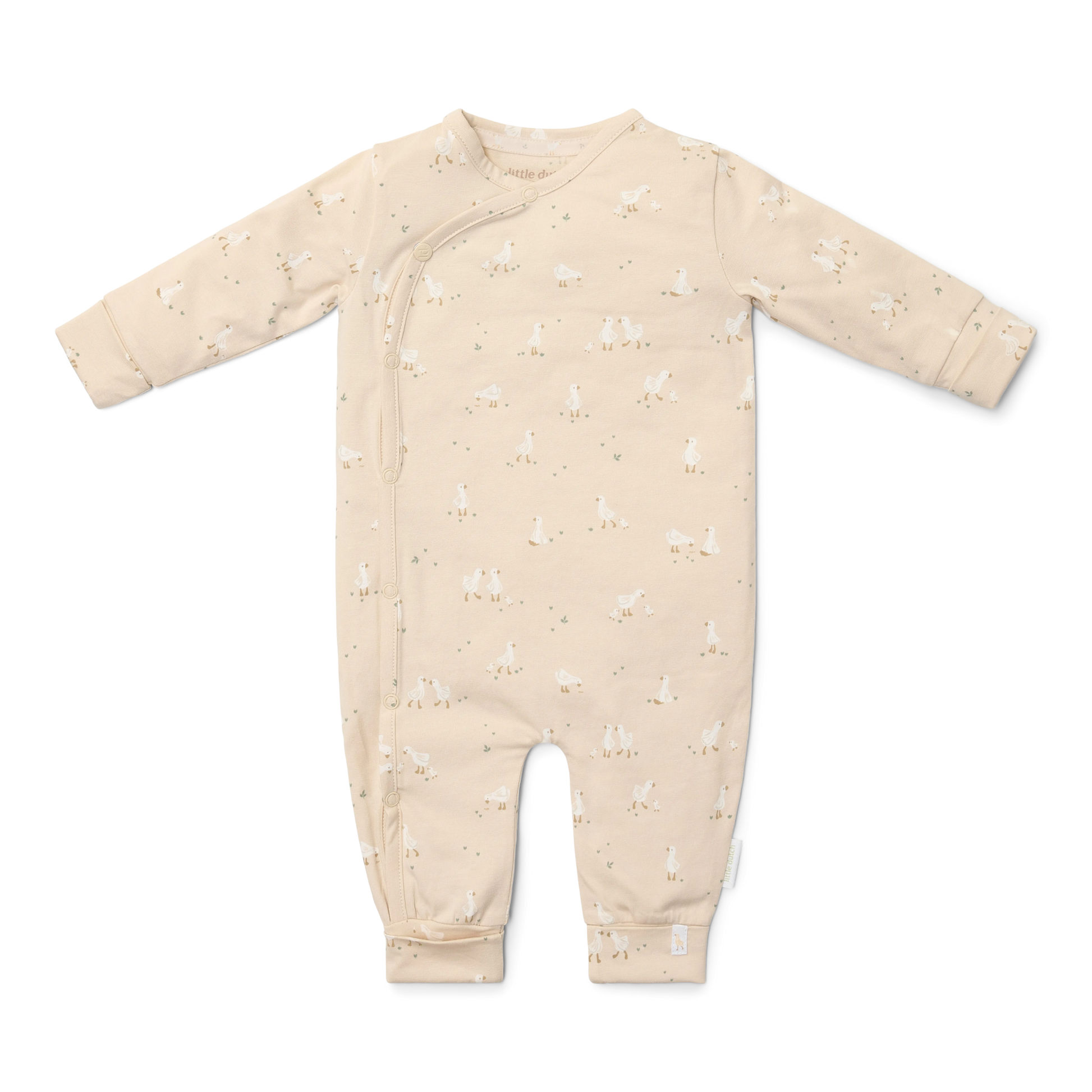 Dit schattige boxpakje in zandkleur met een speelse Little Goose print is een warme en knusse keuze voor je kleintje. Het overslagontwerp maakt aan- en uitkleden zo veel gemakkelijker en de omslag op de armen en benen zorgt ervoor dat het pakje nog even meegroeit met je kleintje. Het zachte biologische katoen is ideaal voor de gevoelige babyhuid. Verkrijgbaar in de maten 44 tot 74.