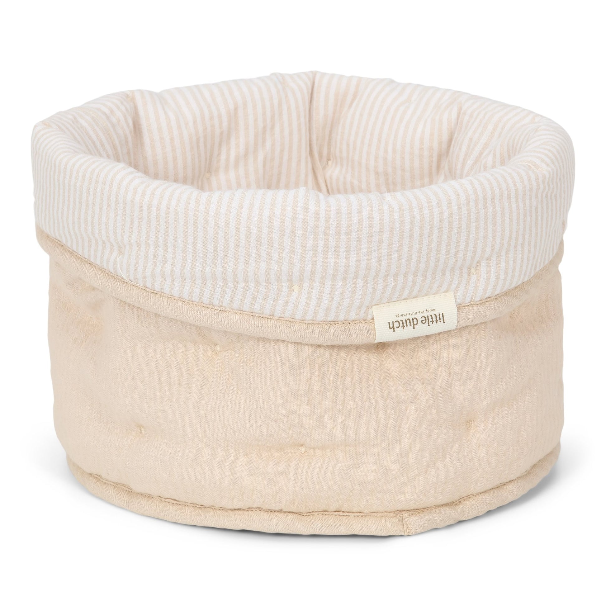Op zoek naar een stijlvolle en praktische oplossing voor de commode? Met deze handige opbergmand van Little Dutch houd je luiers, tubes en flesjes netjes georganiseerd en altijd binnen handbereik! De mand is stevig en prachtig afgewerkt, een echte aanwinst voor de kinderkamer. De zachte Pure Soft Beige kleur en subtiele streep voegen een rustgevende touch toe, en de mand is ook nog eens omkeerbaar voor variatie.