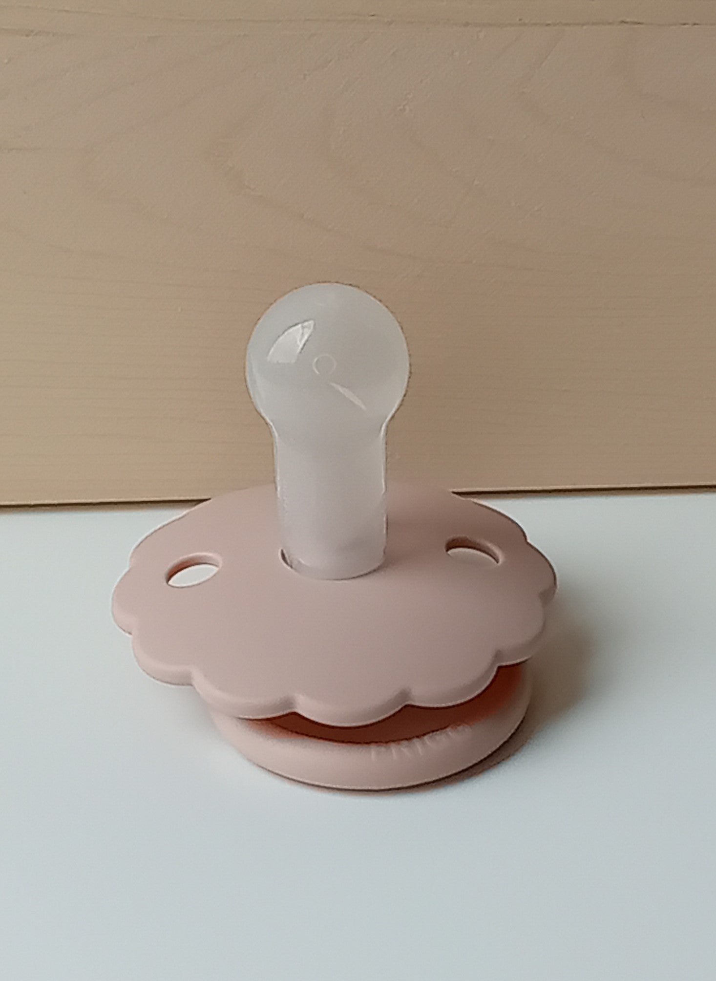 FRIGG Daisy fopspenen zijn verkrijgbaar met een speen van siliconen en natuurlijk rubber van medische kwaliteit.