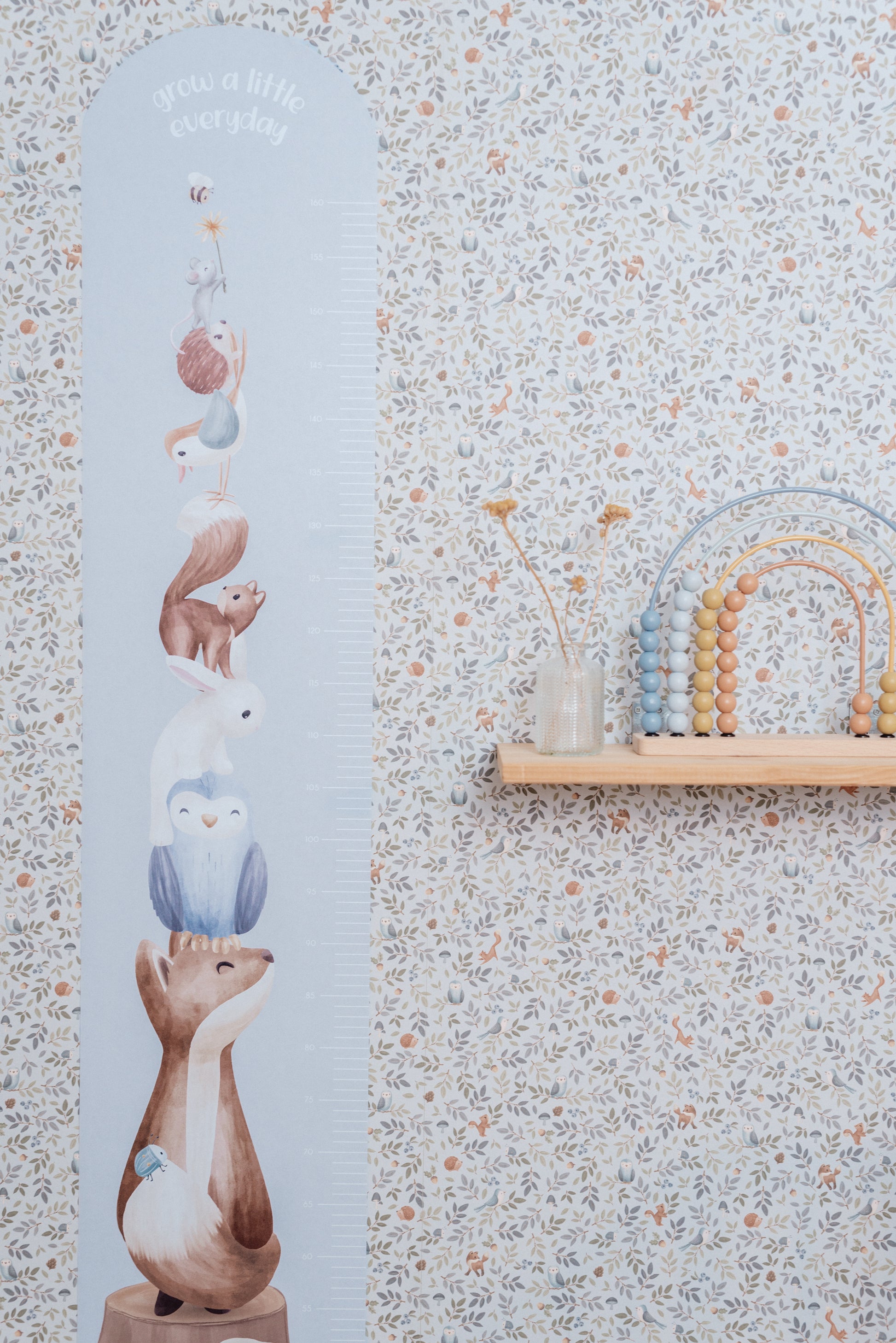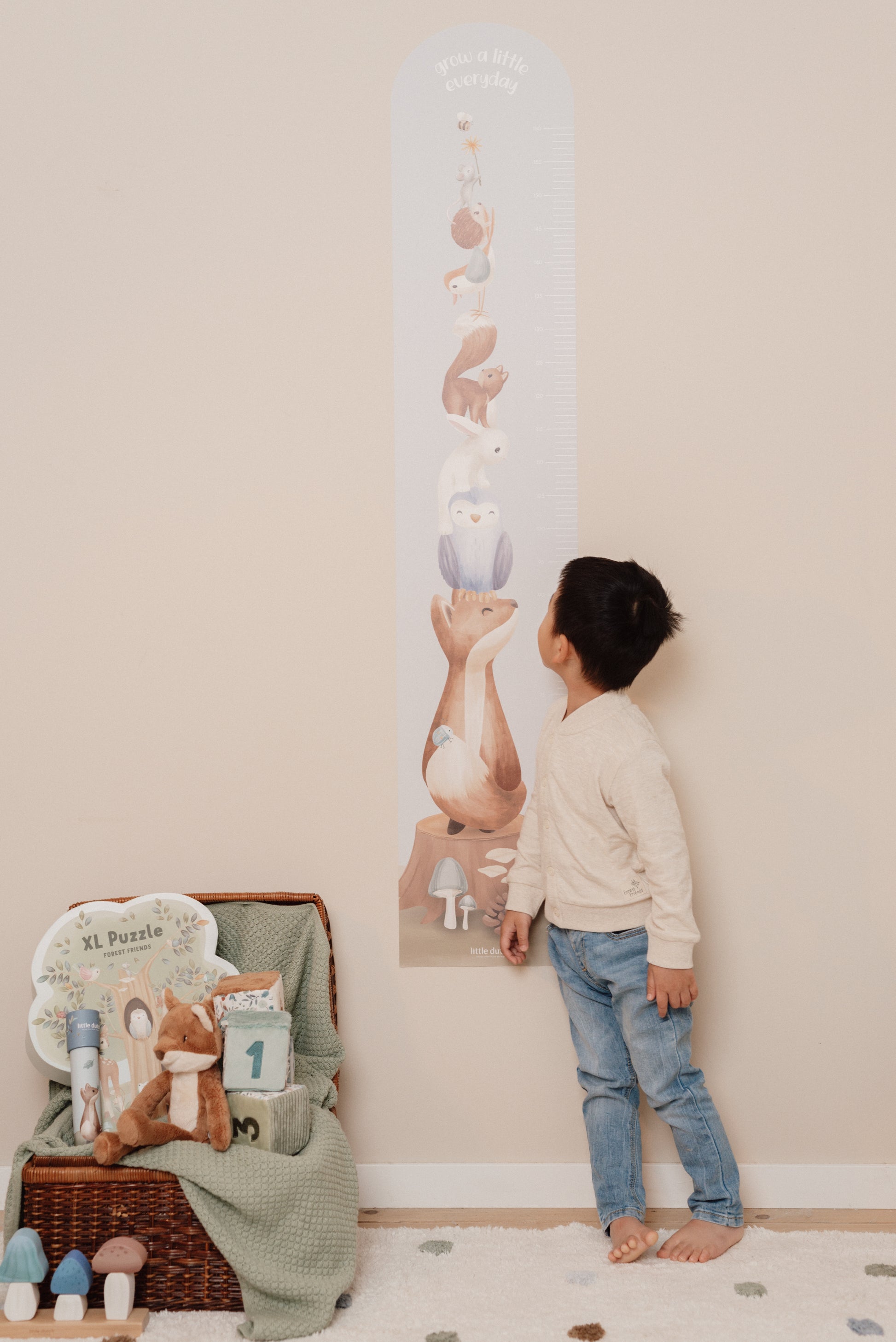 Hou bij hoe snel de kleine groeit met de groeimeter muursticker met Forest Friends thema! De groeimeter bevat bosvriendjes zoals de vos, egels, slakken, de wijze uil en bladeren en paddenstoelen. De muursticker is gemakkelijk te plakken en te verwijderen, dankzij het hoogwaardige, zelfklevende materiaal. Het betreft één sticker, met een matte afwerking en transparante plakrand die een luxueuze look geeft. Je kunt deze plaatsen op muren, en andere gladde, harde oppervlakken. Zorg voor een schoon en vlak oppervlak voor het beste resultaat. Geniet van de landelijke charme, elke dag opnieuw, met deze vrolijke en speelse Little Dutch groeimeter.