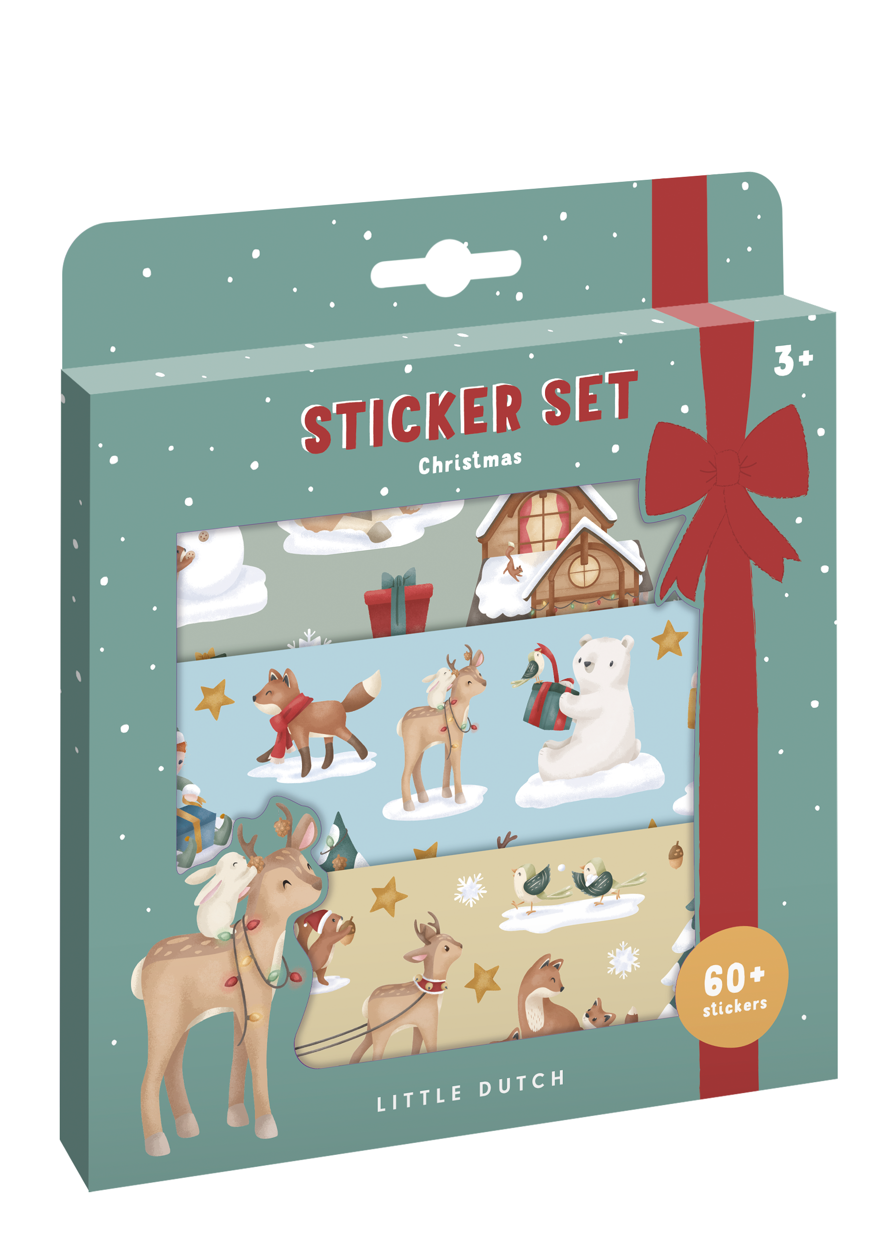 Breng Kerst tot leven met de stickerset van Little Dutch! Met drie unieke stickervellen vol met meer dan 60 stickers, kunnen kinderen hun eigen kerstwereld creëren. Plak lieve hertjes, schattige vosjes, glinsterende kerstbomen en leuke sneeuwpoppen op de achtergrond en laat de kerstpret beginnen!