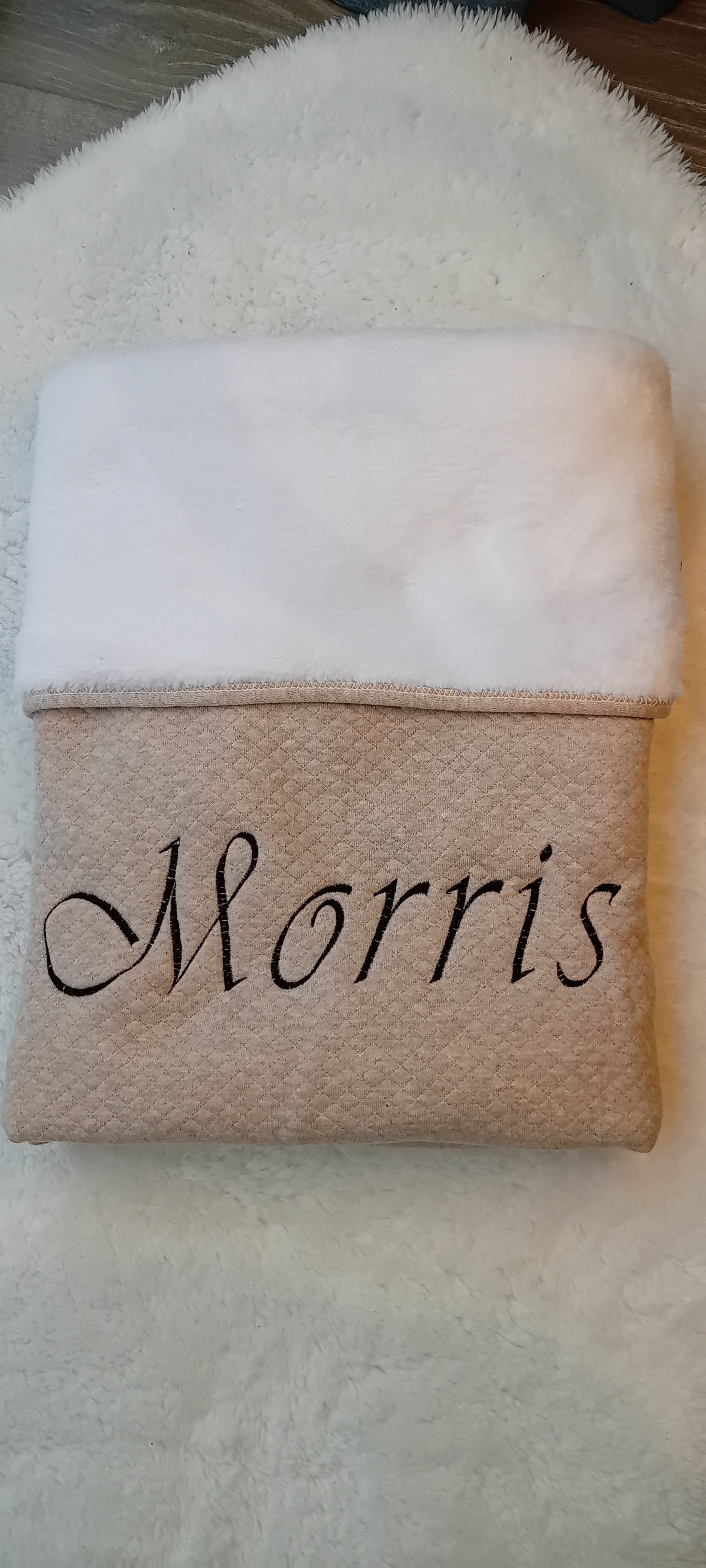 Deken David in doorstikte stof losange wit, camel/beige, grijs, blauw of roze.