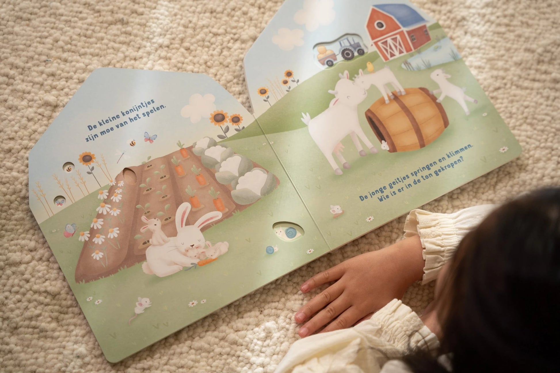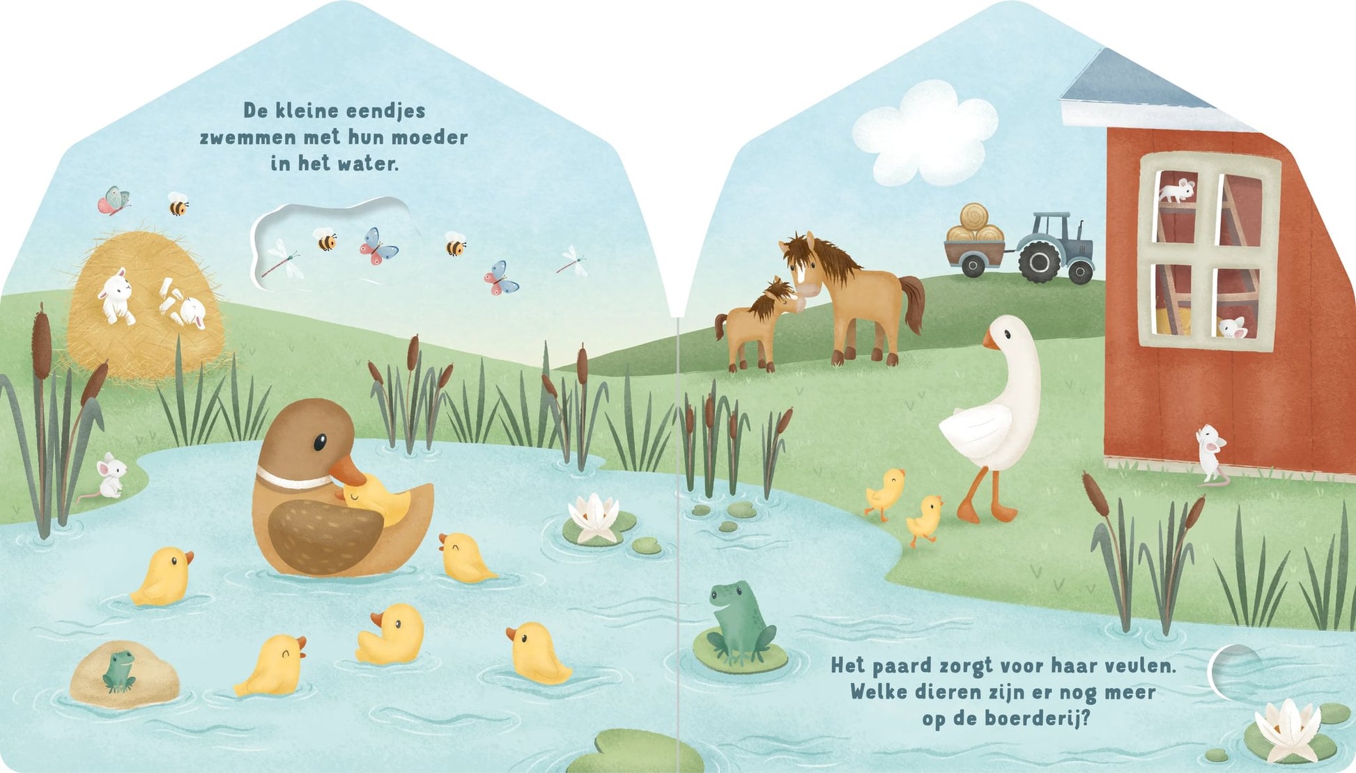 Een heerlijk boek om samen in te bladeren, te benoemen en te verwonderen over alles wat leeft op de boerderij.