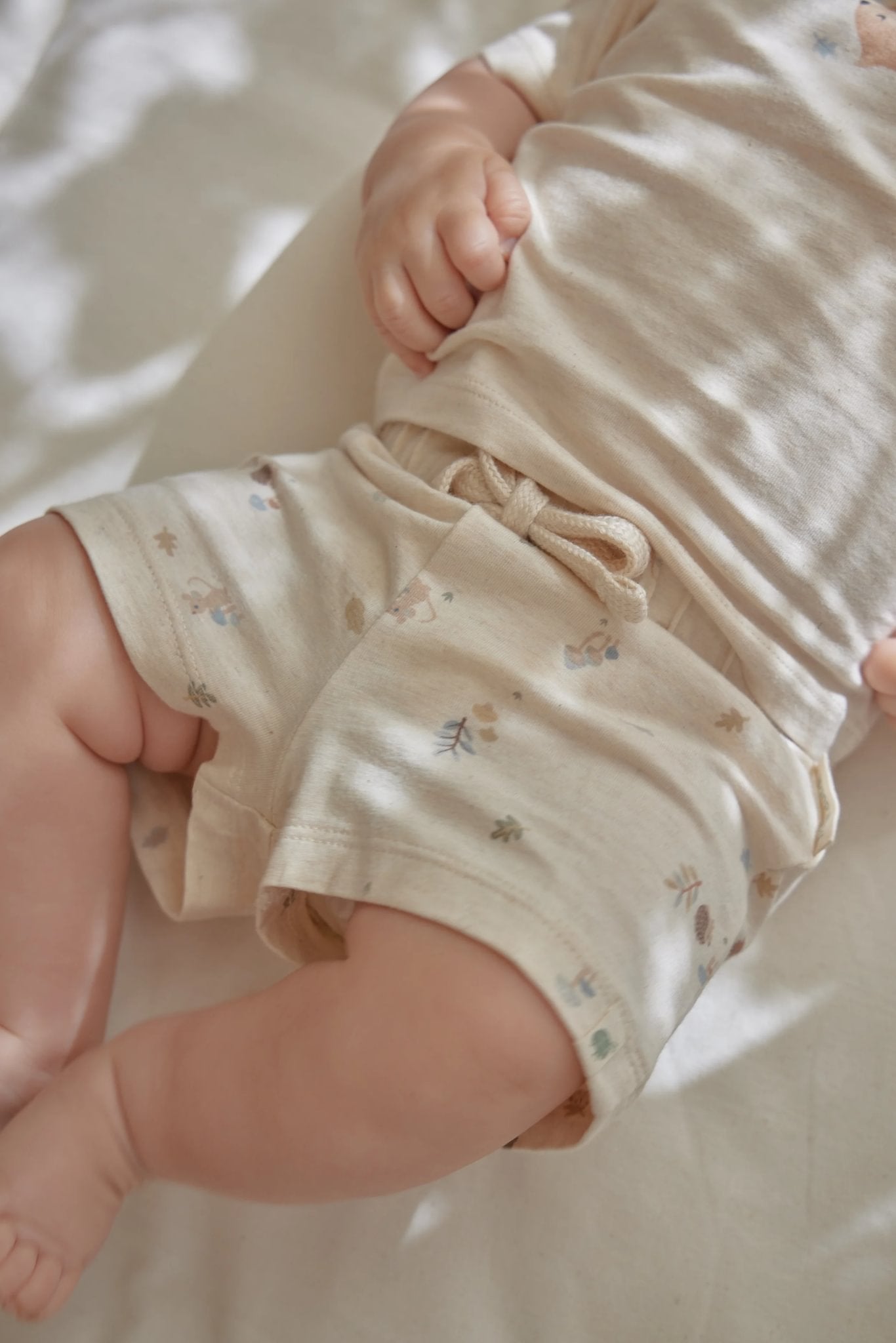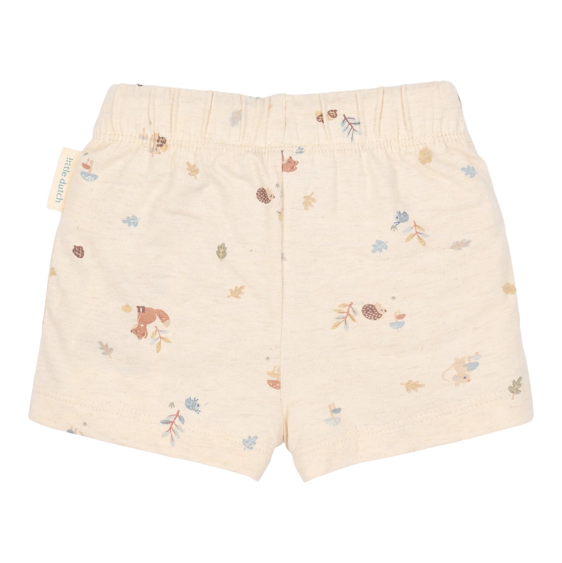 Deze zachte korte broek in gemêleerd zand met lieve Forest Friends print is perfect voor zomerse avonturen. De elastische tailleband met koordje zorgt voor een fijne pasvorm, zodat je kindje vrij kan bewegen en spelen. Gemaakt van biologisch katoen met een vleugje stretch voor extra comfort. Ideaal te combineren met andere Little Dutch items voor een complete look.