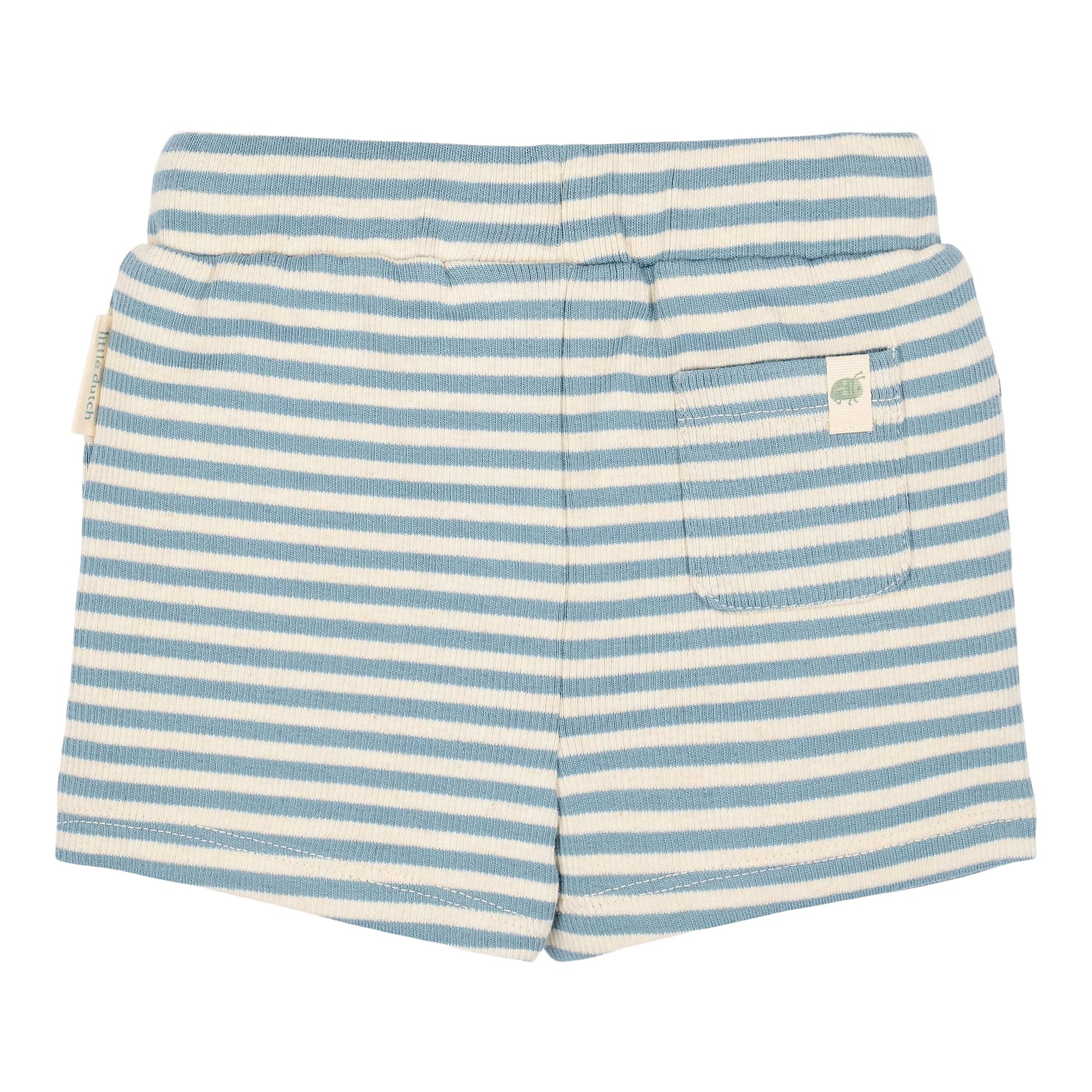Deze zachte, gestreepte korte broek is perfect voor zomerse avonturen. Gemaakt van biologisch katoen in een comfortabele rib kwaliteit, voelt hij heerlijk aan op de huid van je kleintje. De elastische tailleband met koordje zorgt voor een fijne pasvorm. Ideaal om te combineren met andere lieve items uit de collectie.