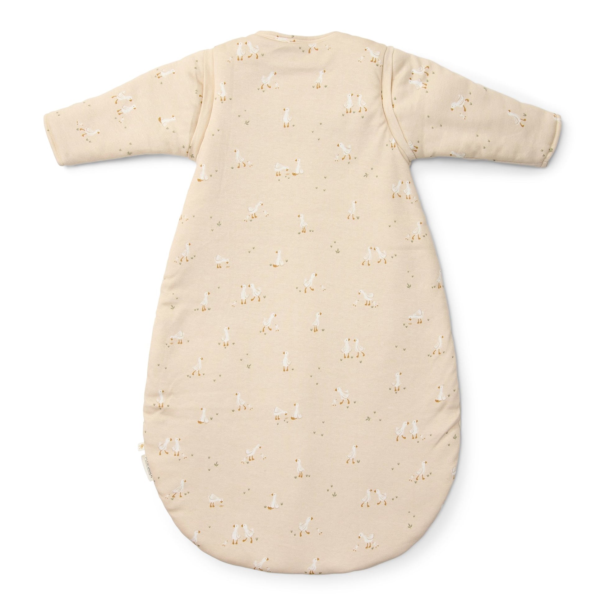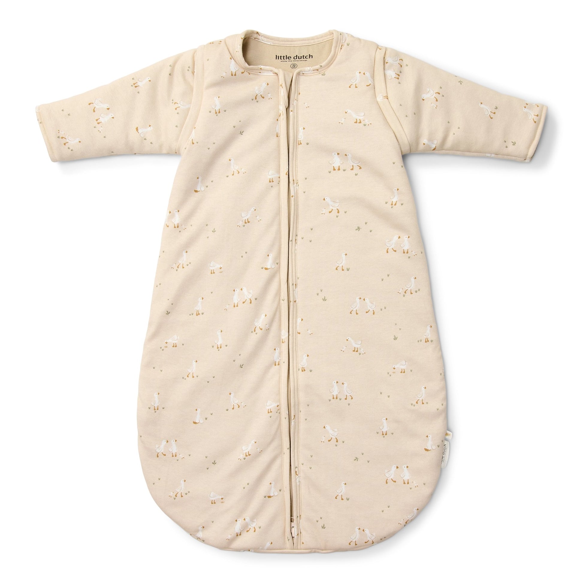 Laat je kleintje wegdromen in deze prachtige winterslaapzak met afritsbare mouwtjes in een zachte, natuurlijke tint met een subtiele Little Goose print. Hij is gemaakt van 100% biologisch katoen en voelt heerlijk zacht en luxe aan. Perfect om je baby warm te houden en die kleine ganzenprint maakt dromen nog zoeter. Slapen in stijl is nog nooit zo comfortabel geweest! De slaapzak is verkrijgbaar in de maten 60 cm, 70 cm en 90 cm. De slaapzak sluit naar beneden zodat je kindje hem niet gemakkelijk zelf kan openritsen. Er zit een flap over de rits om de gevoelige babyhuid te beschermen.