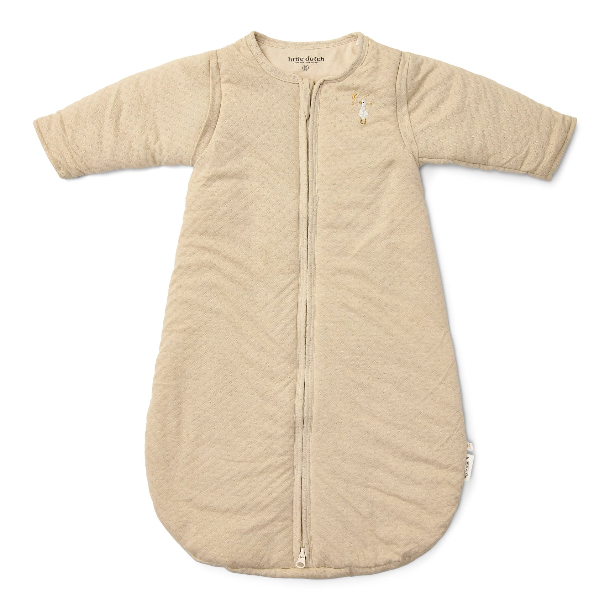 Houd je kleintje warm en knus deze winter met de Little Dutch winterslaapzak in de elegante Soft Beige kleur. Gemaakt van luxe jersey jacquard stof en 100% biologisch katoen, voelt hij heerlijk zacht aan. Het schattige borduursel met gansje op de borst zorgt voor een vleugje charme, terwijl de ronde onderkant en afritsbare mouwen praktisch en comfortabel zijn. Perfect voor koude nachten en schattige dromers. Er zit een flap over de rits om de gevoelige babyhuid te beschermen. De slaapzak is verkrijgbaar in 70 cm en 90 cm.
