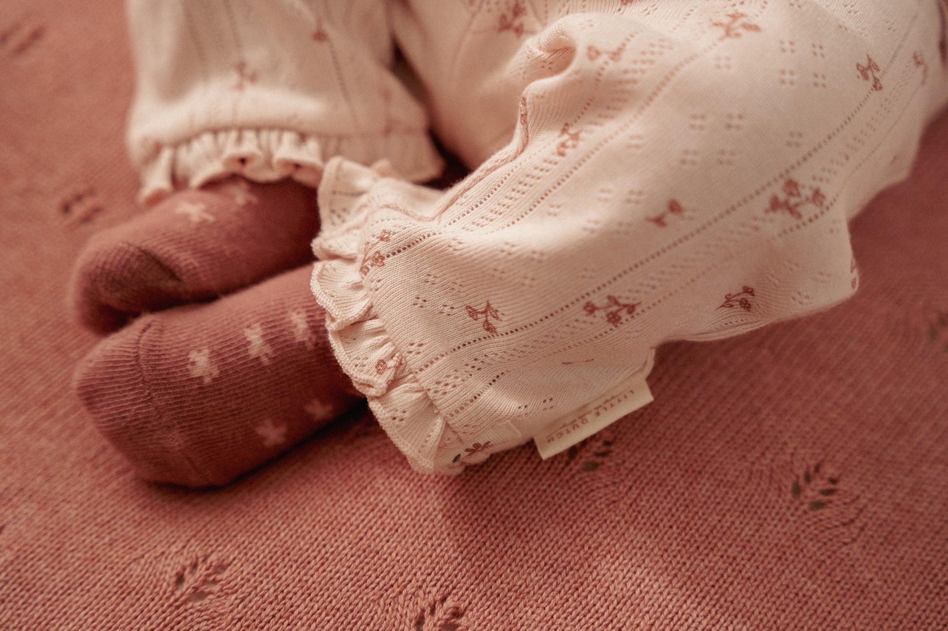 Maak je outfit compleet tot aan je voeten! Deze schattige sokken nemen je mee op elk avontuur dat je maar kunt bedenken. Kies je favoriete paar. Er zijn drie verschillende stijlen om je outfit compleet te maken. Een Pink Blush paar met kleine sterretjes, een wit paar met een klein bloemetje en een lichtroze paar met een randje broderie. De sokjes zijn gemaakt van zacht biologisch katoen en verkrijgbaar in de maten 44/56 en 62/74. Mix en match met de andere items uit de Fairy Garden-collectie.