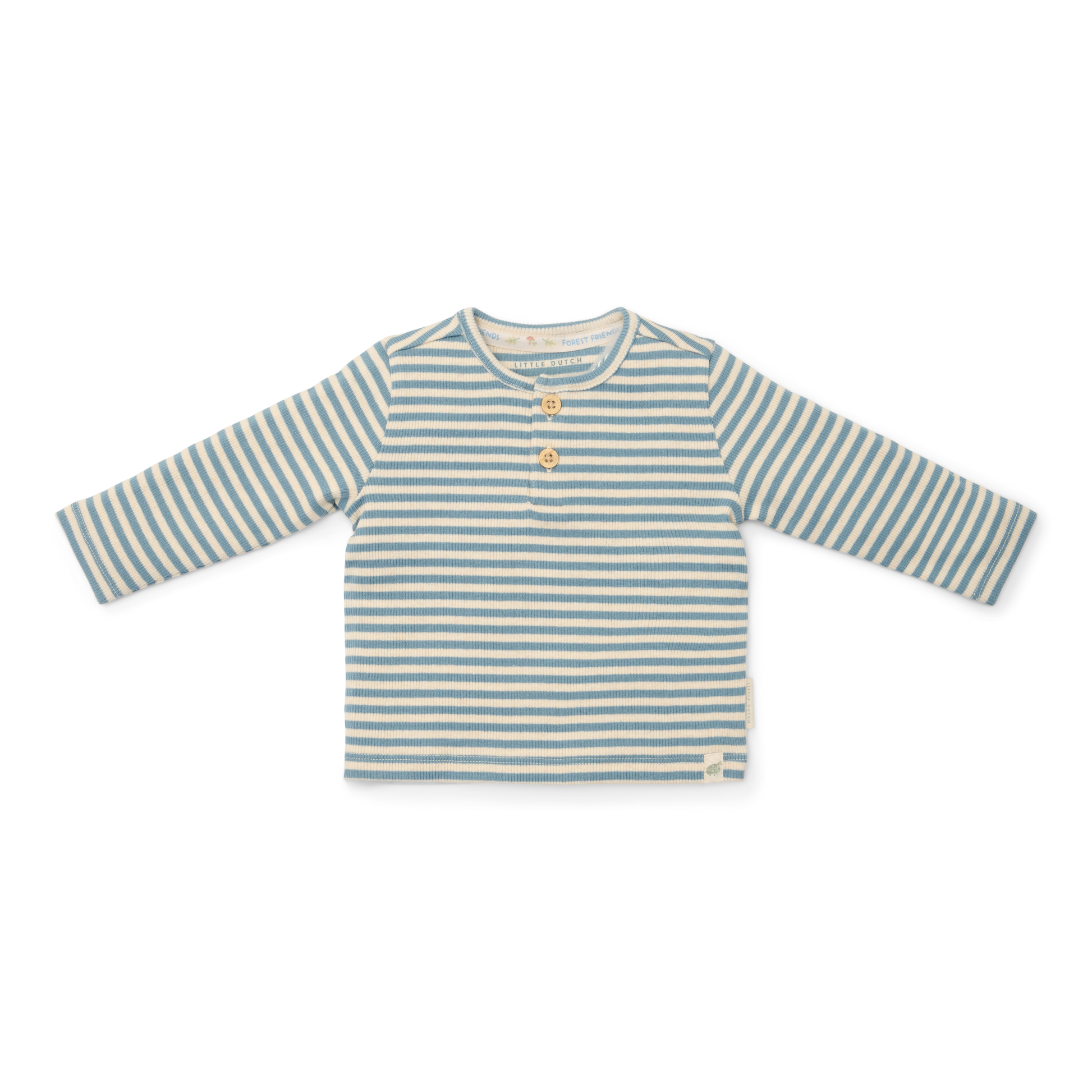Streepje voor streepje, stap voor stap. Dit t-shirt met lange mouwen geeft je een casual en tijdloze look. De stof heeft een charmante streepstructuur en een mooie blauwe kleur. De houtlook knopen op de knoopsluiting zorgen voor een vleugje rustieke charme. Kies voor een co-ord set met de bijpassende broek of mix en match met andere stukken uit de Forest Friends-collectie. Gemaakt van biologisch katoen.