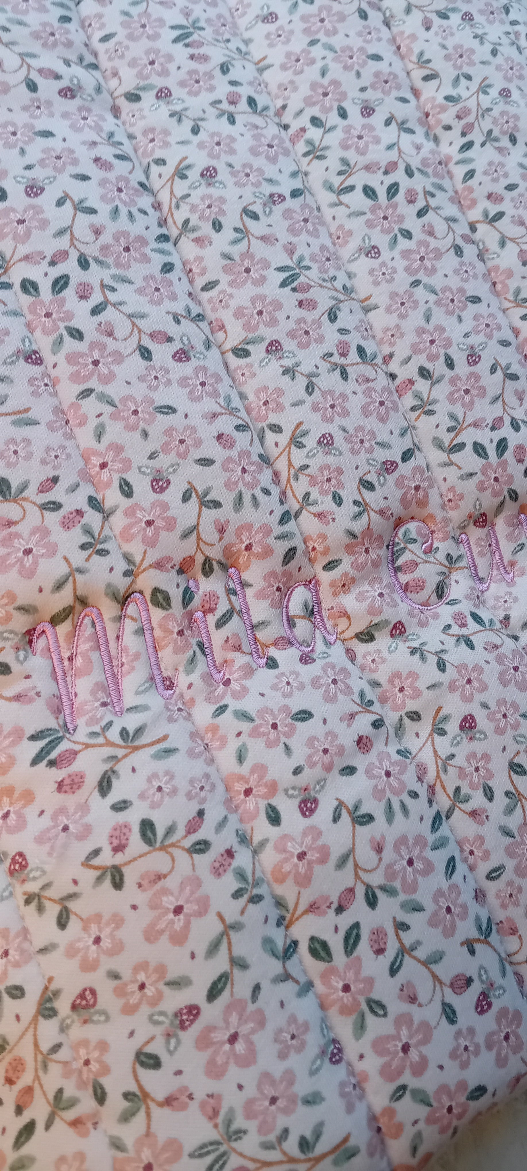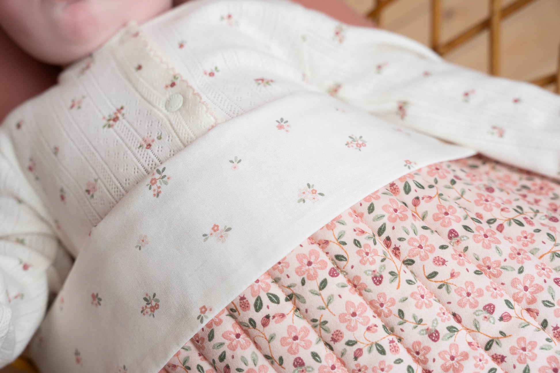 Houd je baby comfortabel en warm tijdens het slapen met deze mooie wiegdeken. Het is gemaakt van 100% biologisch katoen en met subtiele doorgestikte strepen voor een eigentijdse uitstraling. Bovendien is het licht gewatteerd voor extra zachtheid en comfort, waardoor het een ideale keuze is voor de kamer van je kleintje. Dit dekentje is dubbelzijdig en combineert twee prints uit de Fairy Garden collectie. Je kunt kiezen voor de subtiele stijl van Fairy Blossom met een gebroken witte basis versierd met kleine bloemetjes, of voor het roze canvas van Fairy Floral.