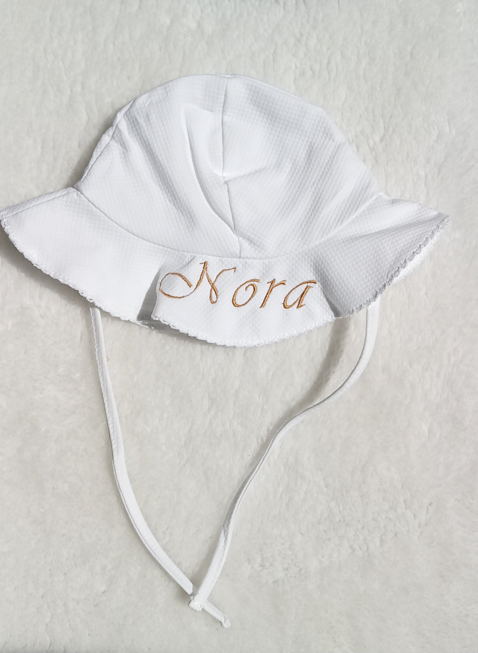 Zomerhoedje voor meisjes in wit katoen met lintjes